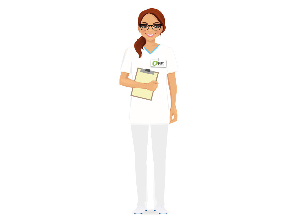 Naše paní nutriční terapeutka ti vysvětlí, jak jídlo pomáhá tvému tělu. Pomáhá vybírat zdravé věci k jídlu, připravuje pro kuchyň jídelníčky, měří tě a váží a také tě učí, co a jak máš jíst, abys byl/a silný/á a zdravý/á.