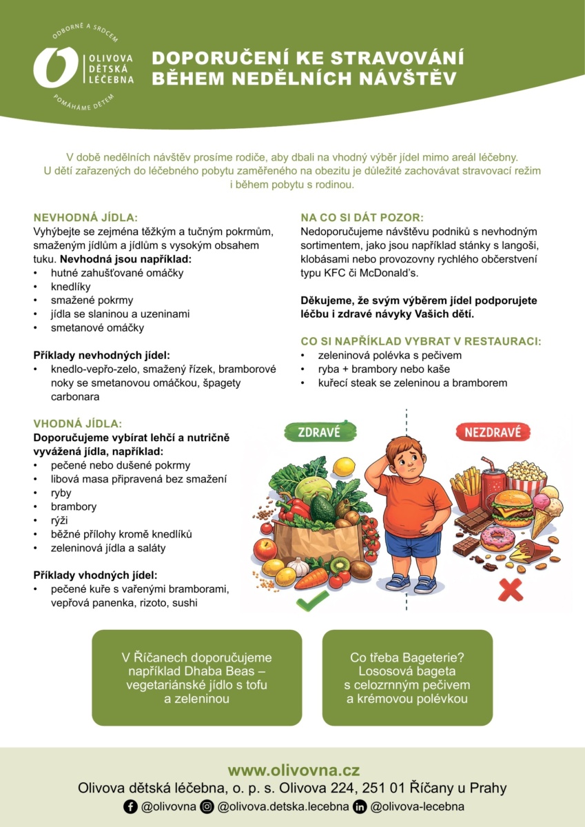 Proto moc prosíme rodiče, aby děti podpořili i v neděli a pomohli jim držet režim také při výběru jídla mimo areál léčebny. Každé takové rozhodnutí má smysl. Dětem dodává jistotu, podporu a ukazuje jim, že na změnu nejsou samy.